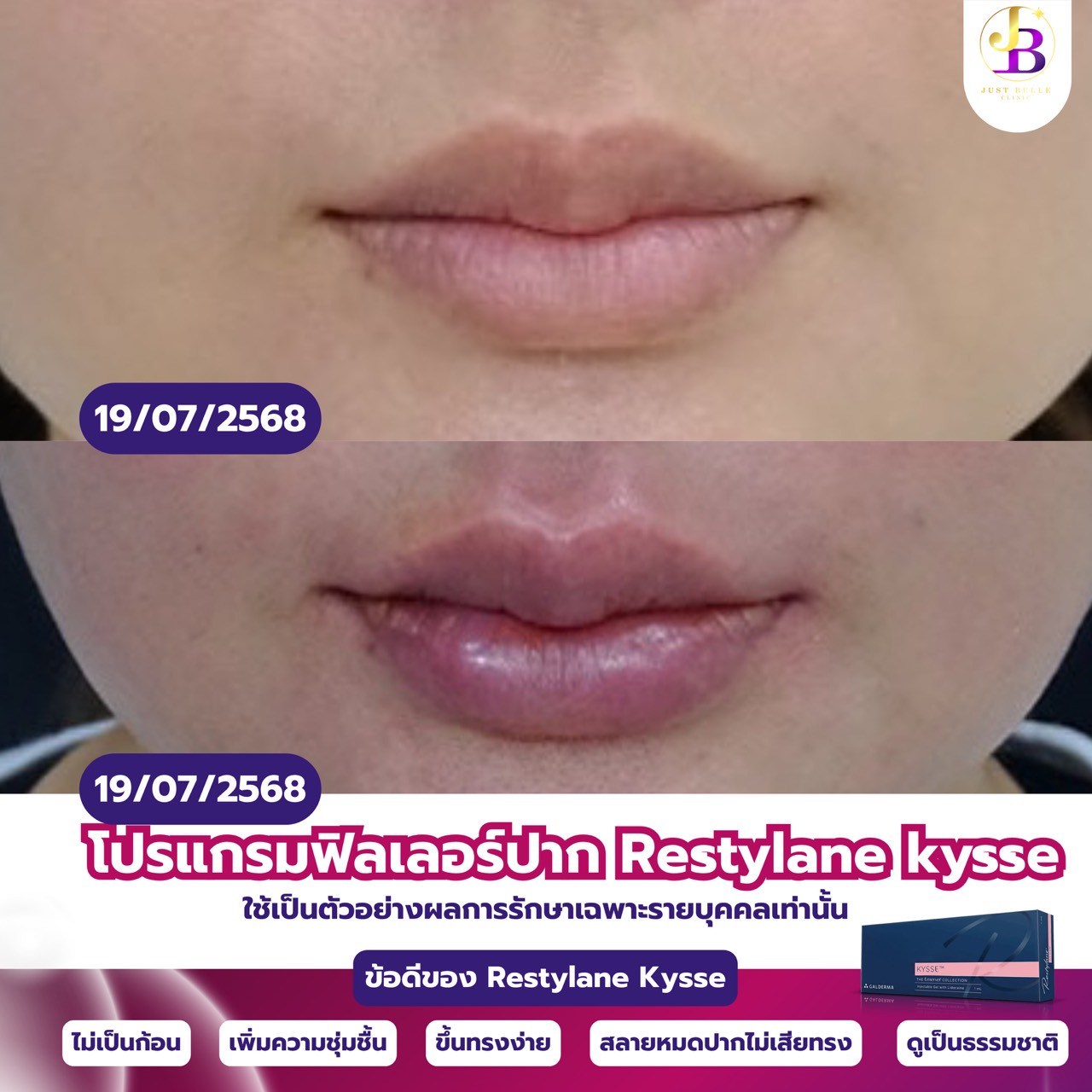 “Restylane เป็นแบรนด์ที่หมอไว้วางใจมากที่สุด โดยเฉพาะรุ่น Vital กับ Kysse ที่ให้ผลลัพธ์สวยและปลอดภัยมาแล้วนับไม่ถ้วน” — แพทย์ผู้ทำหัตถการ Just Belle Clinic